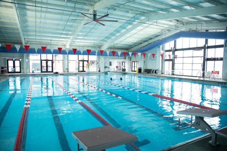A pool supports training, lap swimming, and low-impact conditioning for all ages.